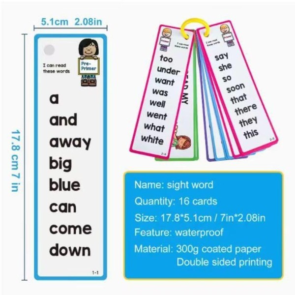 16 English Word Flashcards for Kids Ages 3-6, Fun Learning Tool for Vocabulary Building, Interactive Parent-Child Memory Game