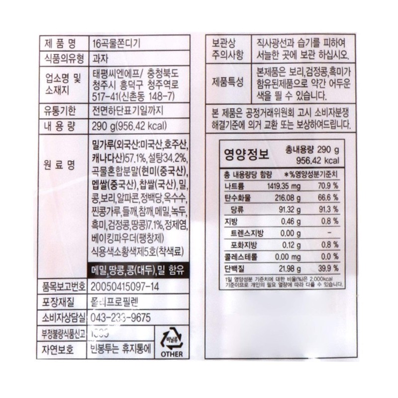 - Made with 16 grains: brown rice, nonglutinous rice, sweet rice, wheat, soybean, barley, corn powder, corn, soybean powder, sesame seed, perilla seed, buckwheat, mungbean, black rice, black soybean, and peanut
