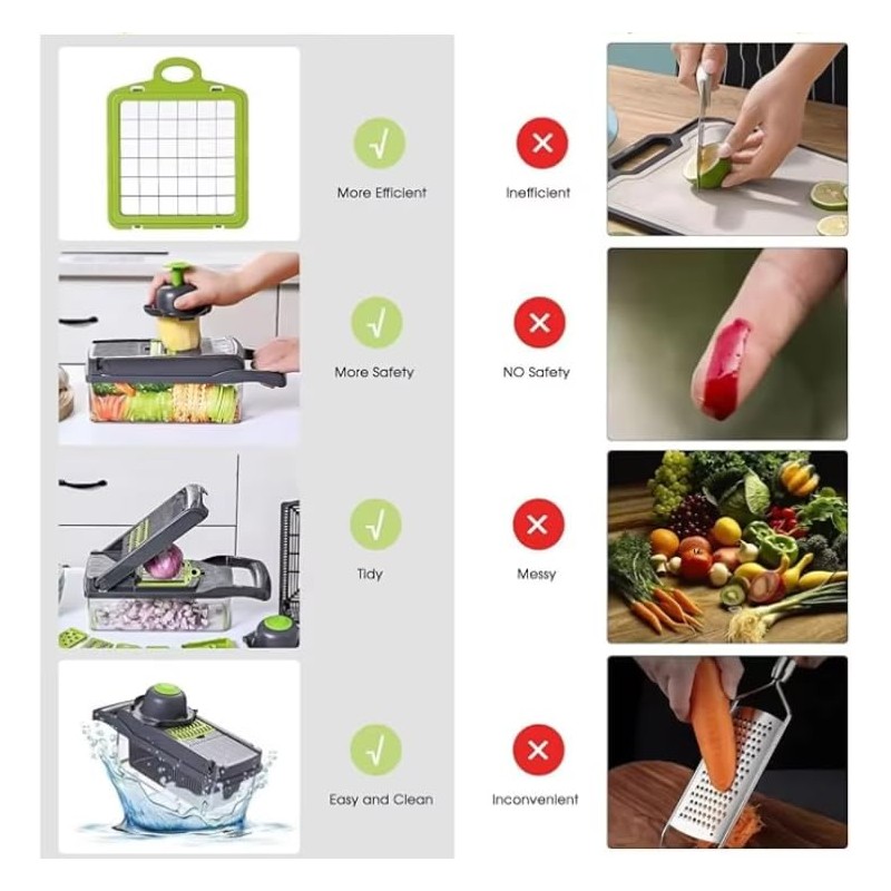 - Versatile Kitchen Companion: This multi-functional vegetable cutter is designed to meet the diverse needs of home cooks, featuring 16 different functions in one convenient tool, making it an essential addition to any kitchen.