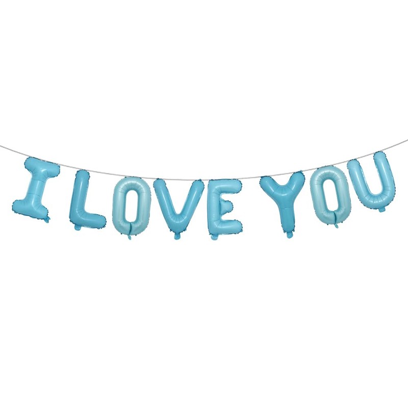 16 inch Marry me I Love You Letter Balloons Kit Valentines Day Anniversary Wedding Banner Decorations for Event Party (I LOVE YOU Light Blue)