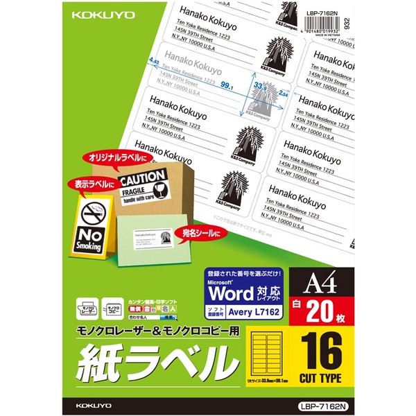 コクヨ コピー用 ラベル スタンダード 16面 LBP-7162N