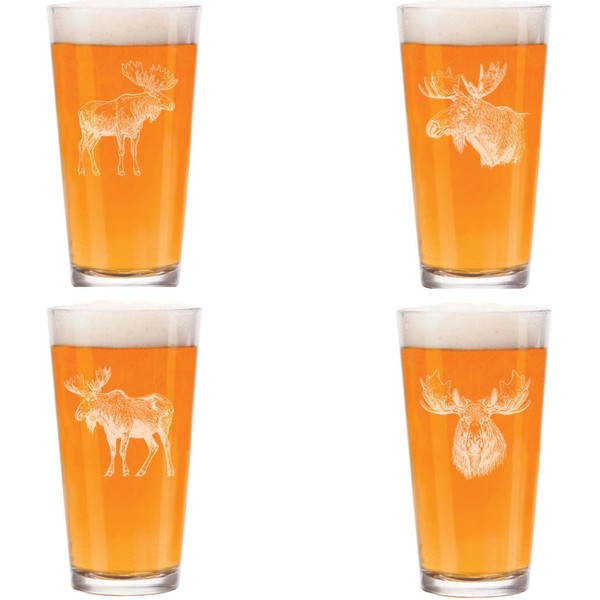 16 oz Beer Pint Glass Gift Set Of 4 Moose Collection