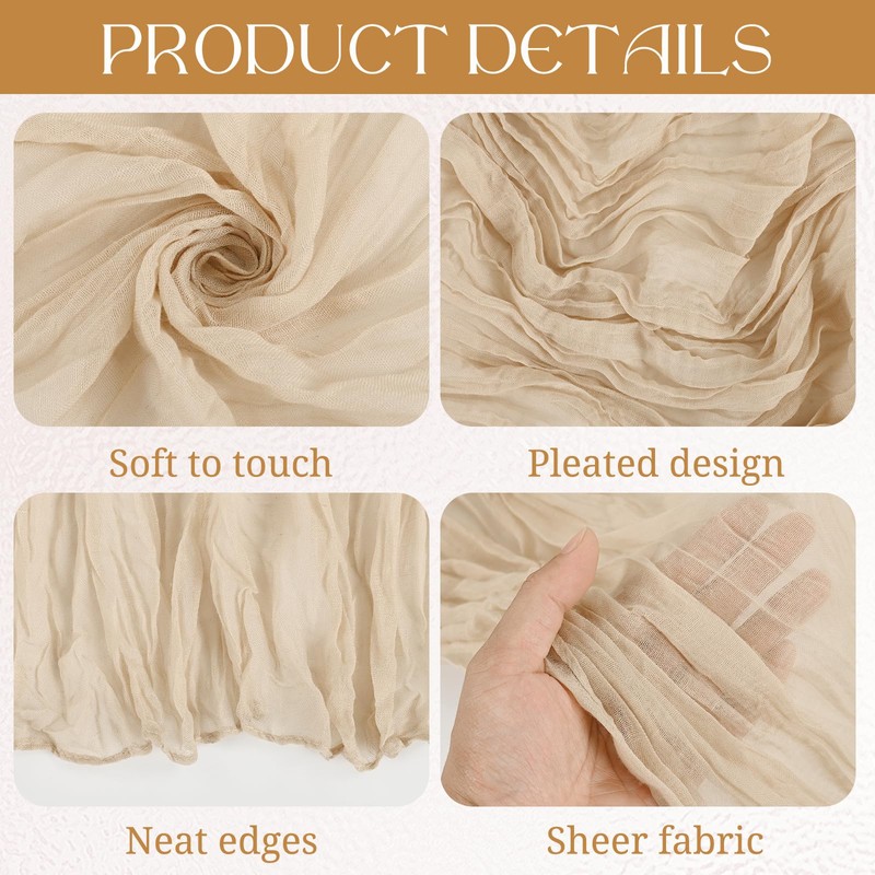 - 【Elegant Design】Our cheesecloth table runners feature a pleated texture design adds more vintage, rustic and aesthetic beauty. This rectangular romantic vintage gauze table runners has a rustic-elegant look. The cheesecloth table runner is long enough, drapes gracefully across your table and flows onto the floor add romantic atmosphere to your table at any event. The cheese cloth table runner will work well in a rustic,bohemian, farmhouse or contemporary setting.