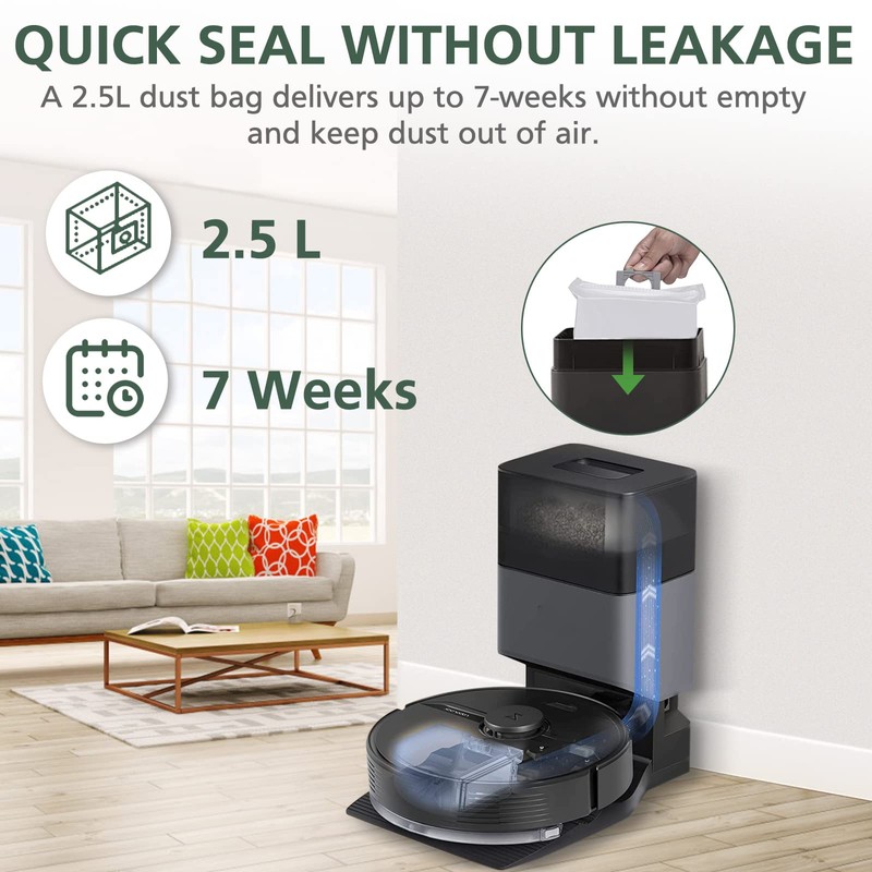 - ANTI-LEAK TECHNOLOGY: The Q7 dust bag with a rubber seal has a strong sealing property to ensure all the dirt inside the dust bag is collected. The rubber gasket is thick enough and can seal very well to the dock. Won't lead the dock to get full of dirt, extending its service life.