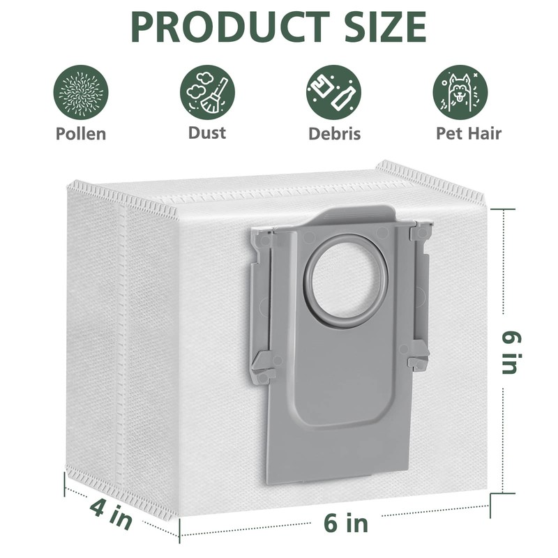 - 3.6L LARGE CAPACITY REPLACEMENT BAGS: Each dustbin bag holds a 3.6L large capacity. The dimension is 7.6 x 6.1 x 4.7 inches, can store up to 7 weeks of debris. Leave enough space for all naughty particles. Creating a tidy environment for you.