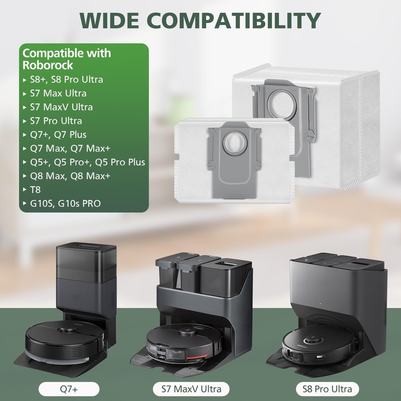 - FIT MODELS: S7 MaxV Ultra Dust Bag compatible with Roborock S7 MaxV Ultra, S7 Max Ultra, Q5, Q5+, Q5 Pro+, Q7, Q7+, Q7 Max, Q7 Max+, Q8 Max+, S8+, S8 Pro Ultra and S7 Pro Ultra Robot Vacuum. Please kindly check your machine model before ordering.