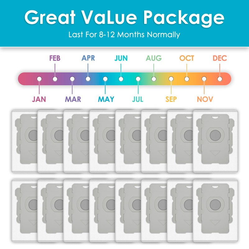 (16 Pack) Replacement Dust Bags Compatible With iRobot Roomba i7, i7+, i3, i3+, i1+, i4, i4+, i6, i6+, i8, i8+, j7, j7+, s9, s9+ Plus, i & s & j Series Robot Vacuum, Vacuum Bag, Dsiposable Bag