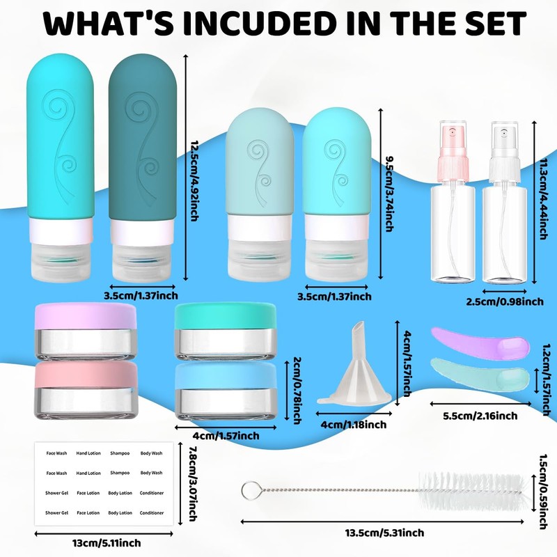 If you go on travel frequently or plan to go on a trip and don’t like using the hotel, cruise , etc. toiletries. This travel bottle set is great for you.