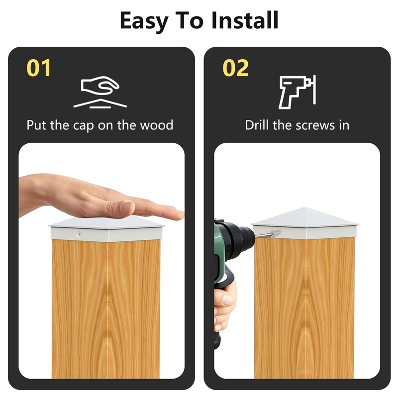 - Easy Installation-No Special Tools Needed – Simply place the fence post cap on top of your post and secure it using the included screws or nails. A hassle-free way to enhance your fence’s durability and aesthetic appeal.
