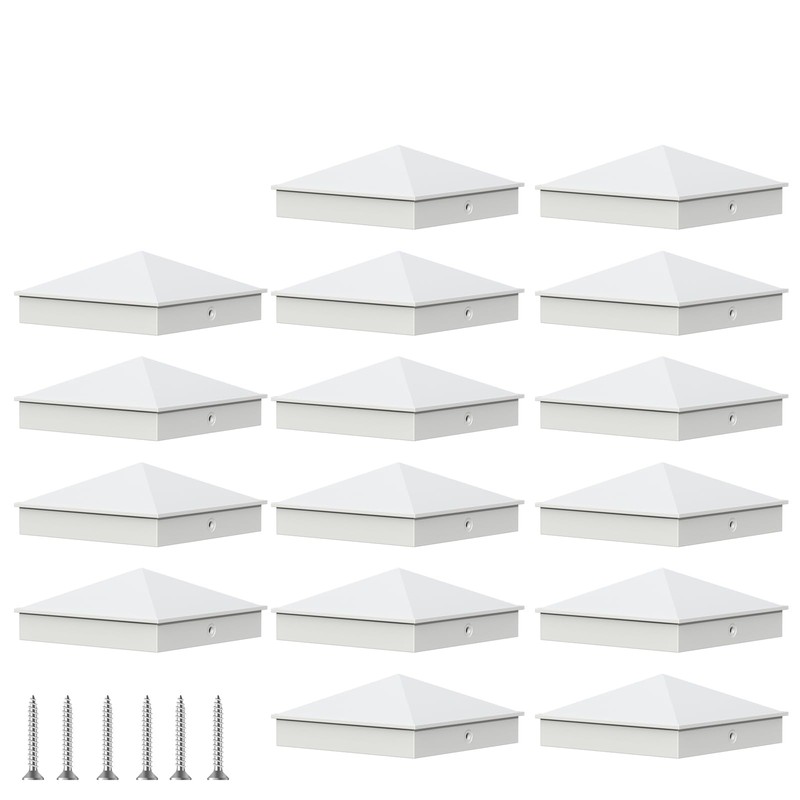 16 Pcs 4“x 4“(Actual 3.5" x 3.5") White Aluminum Pyramid Fence Post Caps,Black Matte Post Covers Fit 4x4 Nominal Wood Post for Fence Wood Post of Decks or Corridors