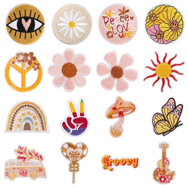 16 Pcs Iron on Patches for Clothing Patches for Clothing Sew on Patches Embroidery Patches Embroidered Applique Patches Stickers Assorted Sewing Flowers Applique DIY Accessory (Style-A)