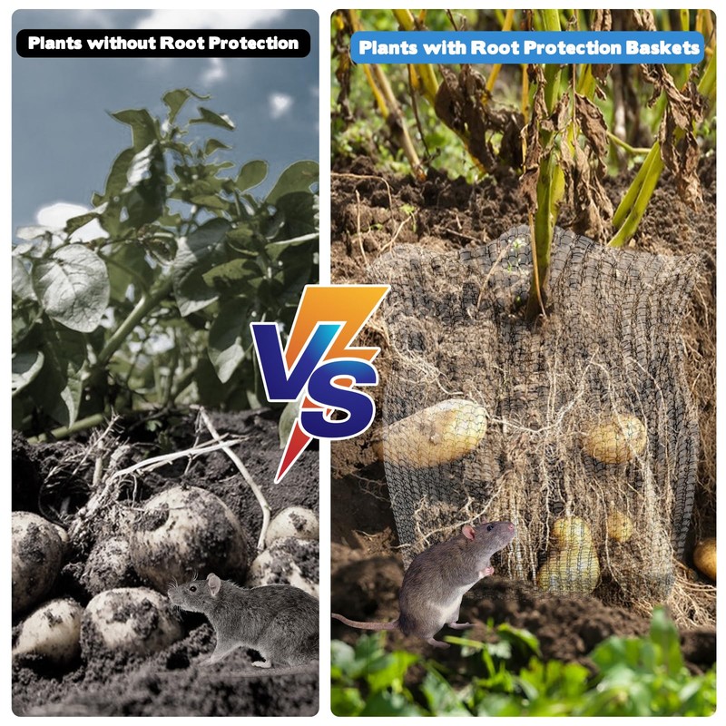 • Applications: These flower net pockets are designed to safeguard many plants, including potted plants, fruit trees, shrubs, flowers, and vegetables like tulips, hyacinths, potatoes, and carrots, against damage by gophers, moles, voles, and squirrels.