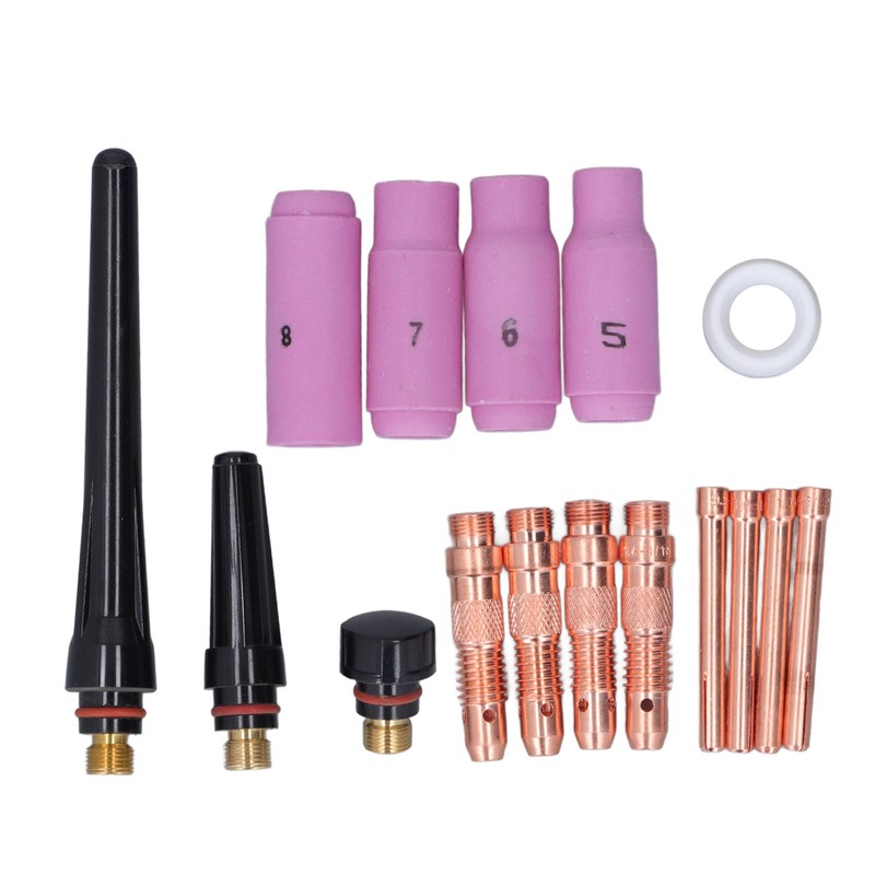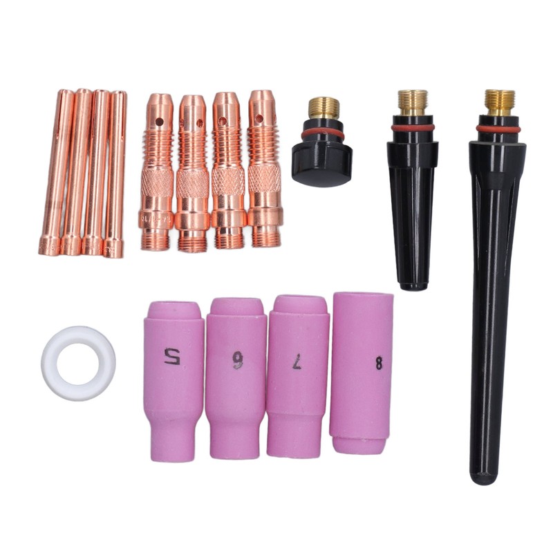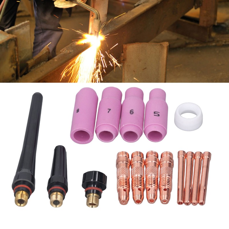 16 Pcs Welding Torch Accessories Ceramic Nozzle Pressure Cap Collets Body Electrode Clip PTFE Front Cover Welding Gun Kit