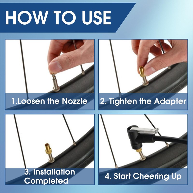 - The high-quality materials, easy handling and long service life make the bicycle valve adapter set an indispensable accessory for any cyclist who values quick and easy maintenance of their tyres.