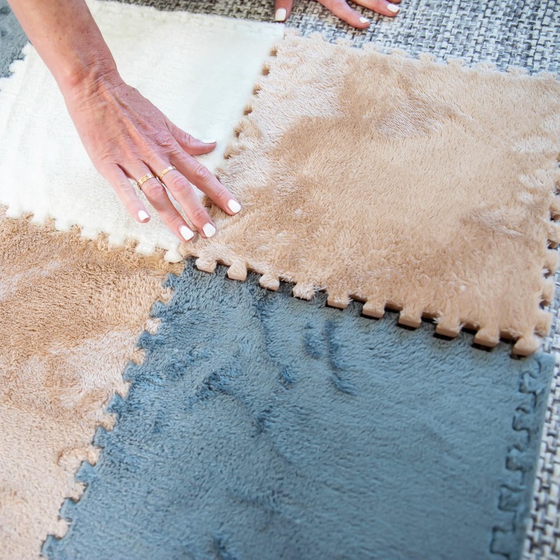16 Piece Carpet Squares Puzzle Mat 49" x 49" Plush Interlocking Carpet Tiles, Foam Floor Tiles for Baby Play Mat - Kids Soft Play Mats Anti Slip Jigsaw Flooring Playmat Playroom Rug (Brown,Gray,White)