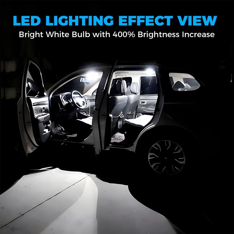 • 300% BRIGHTNESS:Built in Constant Current IC and with Efficient 3014-SMD Chipsets, Replace Original Yellow Dim Interior Lights, Offer a 300% Brigther Pure White View in Your Car, Lights Up Your Cabin as Bright as Daytime.