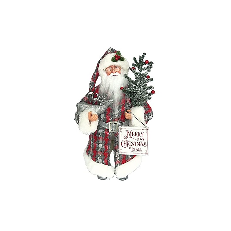 16" Standing Plaid Santa "Merry Christmas To All" Figure with Reindeer and Tree