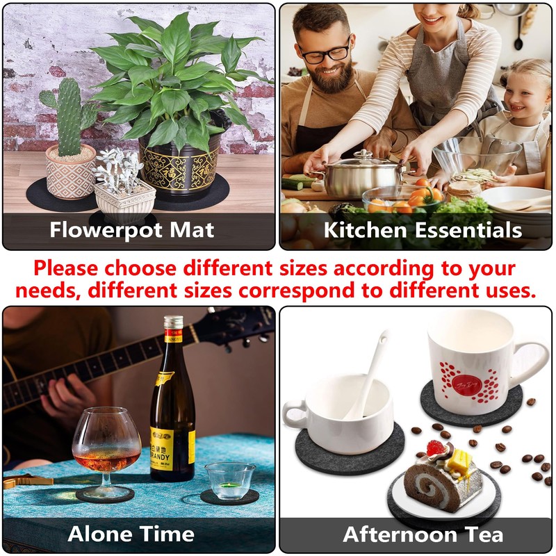 - Verschiedene Größenoptionen: Der Filzuntersetzer ist in den Größen 15 cm, 20 cm, 25 cm, und 30 cm erhältlich Dicke 5mm, um sich an verschiedene Bedürfnisse und Verwendungszwecke anzupassen.15 cm, 20 cm, 25 cm, 30 cm jeweils 4 Stück insgesamt 16 Stück.