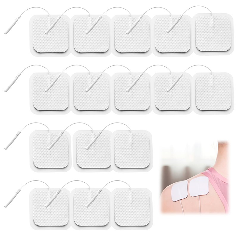 16 Stücke Tens Elektroden Pads 40 * 40 mm, Elektrostimulator TENS EMS, Universal-Elektrostimulationspflaster Wiederverwendbare Klebeelektroden für Compex-Elektroden, 2 mm Anschlus