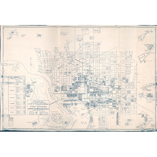 16" x 24" 1946 Map of Metropolitan of Washington District of Columbia Public Buildings