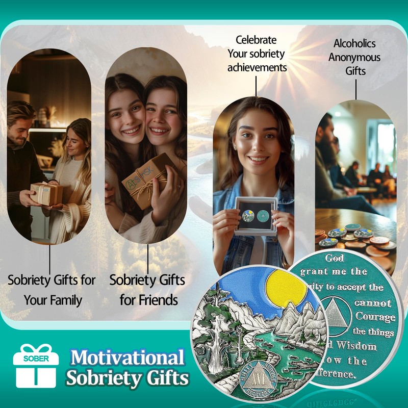 - Motivational Sobriety Gifts for Men Women: Sobriety coins can be used to celebrate not only sobriety anniversaries and sobriety milestones, but also as recovery tokens to celebrate sobriety, Alcoholics Anonymous, Narcotics Anonymous, sobriety meetings, Thanksgiving, Christmas, birthdays, and more, making them the perfect gift for yourself, your friends, and your family