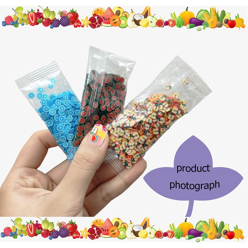 - 20 KINDS OF FRUIT SLICES - There are 20 kinds of fruit nail slices including banana, strawberry, orange, apple, kiwi, watermelon, grape, grapefruit, lemon and tomato (several of them have multiple colors).