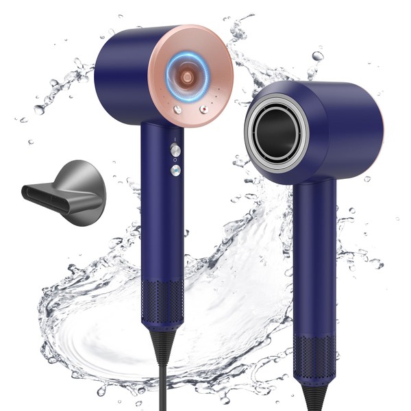 1600W Fast Drying Hair Dryer,Negative Ionic Blow Dryer with High-Speed 110,000 RPM Brushless Powerful Digital Motor,Low Noise Thermo-Control (Beige - Dark Blue)