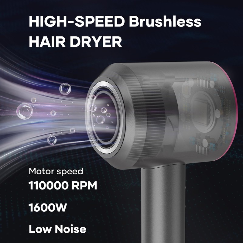 - 【Fast Drying】Equipped with a high-speed brushless motor running at 110,000 RPM and achieves a wind speed of up to 22m/s, drying hair in just 59 seconds – 3-5 times faster than traditional hair dryers.