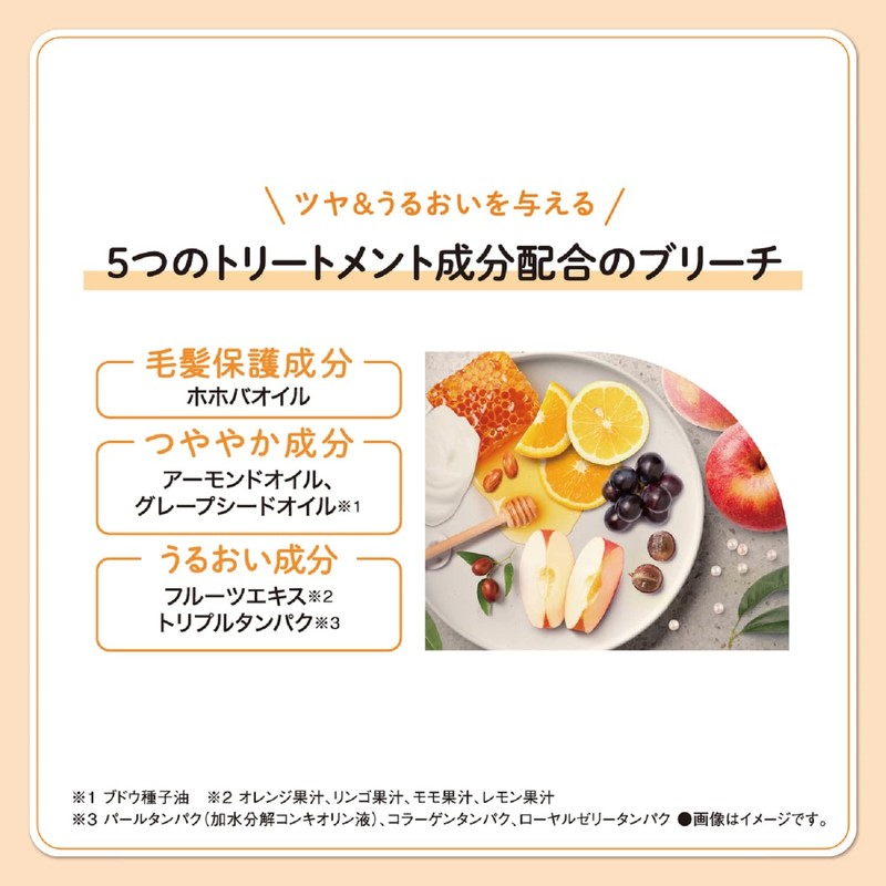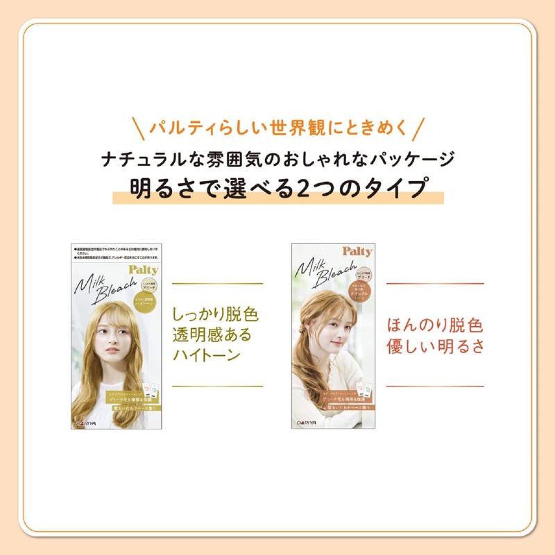 - しっかり明るくするミルクブリーチ。2つのトリートメントで髪を整えます。