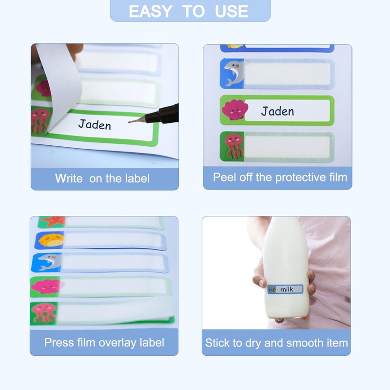 Features:160-Piece Value Pack Waterproof Name Labels - Write-On Cartoon Stickers for Water Bottles