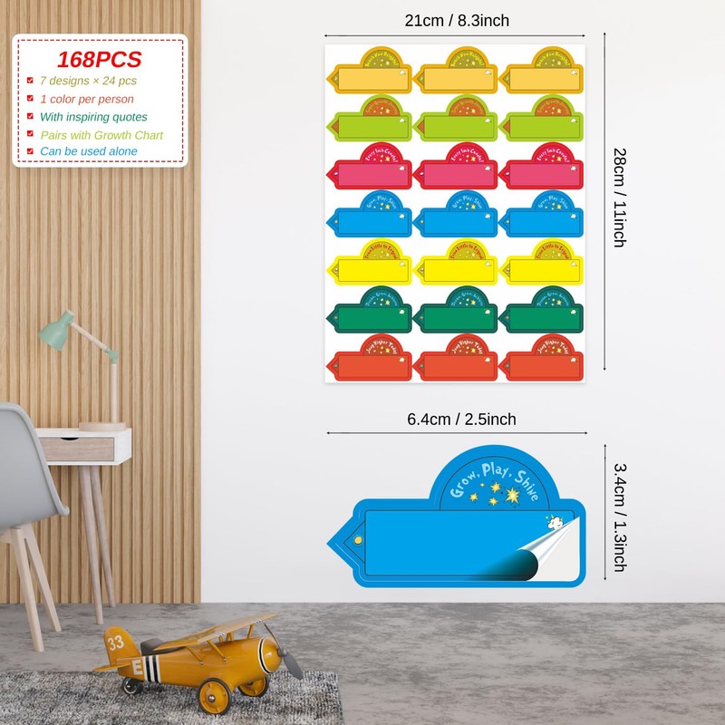 168 PCS Growth Chart Stickers - Height Measurement Tracking Labels for Kids, Motivational Decals for Charts/Wall/Door