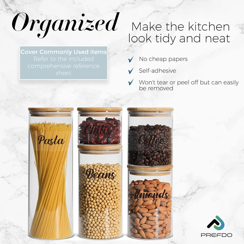 - WATERPROOF& REMOVABLE - The self-adhesive pantry organization labels can easily be removed. Water and oil resistant. Easy to wipe off, not easy to be torn.