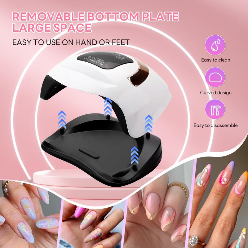 - 【Poratble Handle & LCD Touch】Nail lamp has a noble and elegant design, a handle, easy to take anywhere. Detachable base is more convenient for toenail gel curing and cleaning. Large LCD display shows curing time more clear. The design of the curved lines increases the internal space and easily cure hands or feet. Lines and lights make it like a small space capsule. The moment when becomes beautiful is like visiting a mysterious outer space!