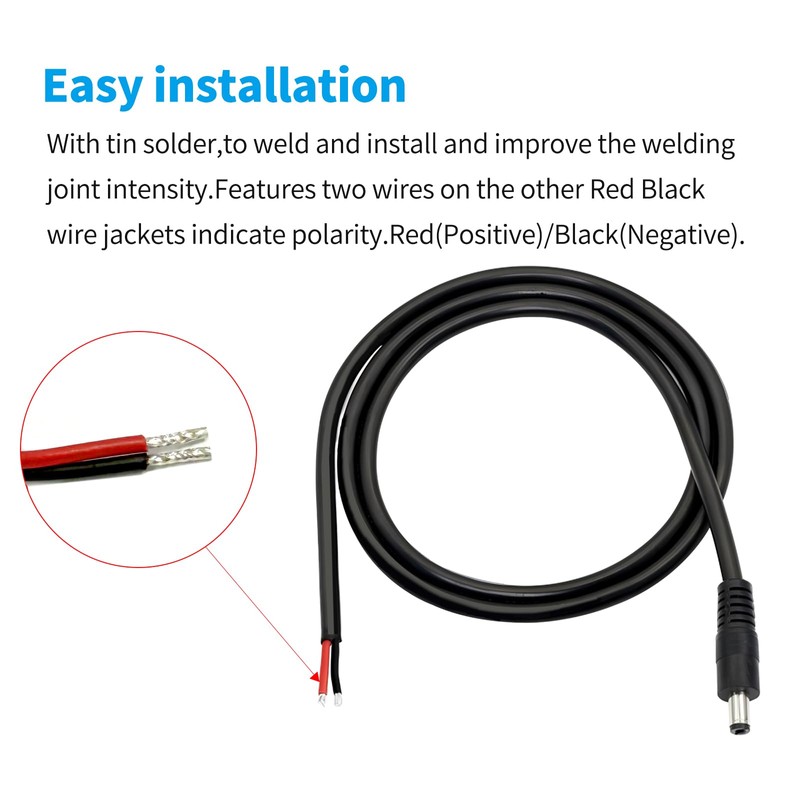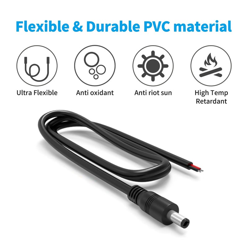 • Repair-Centric Design: DC 5.5MM x 2.1MM Male Plug to Bare Wire cable revives damaged cords in CCTV, 12V equipment, and more—your go-to power supply repair solution.​