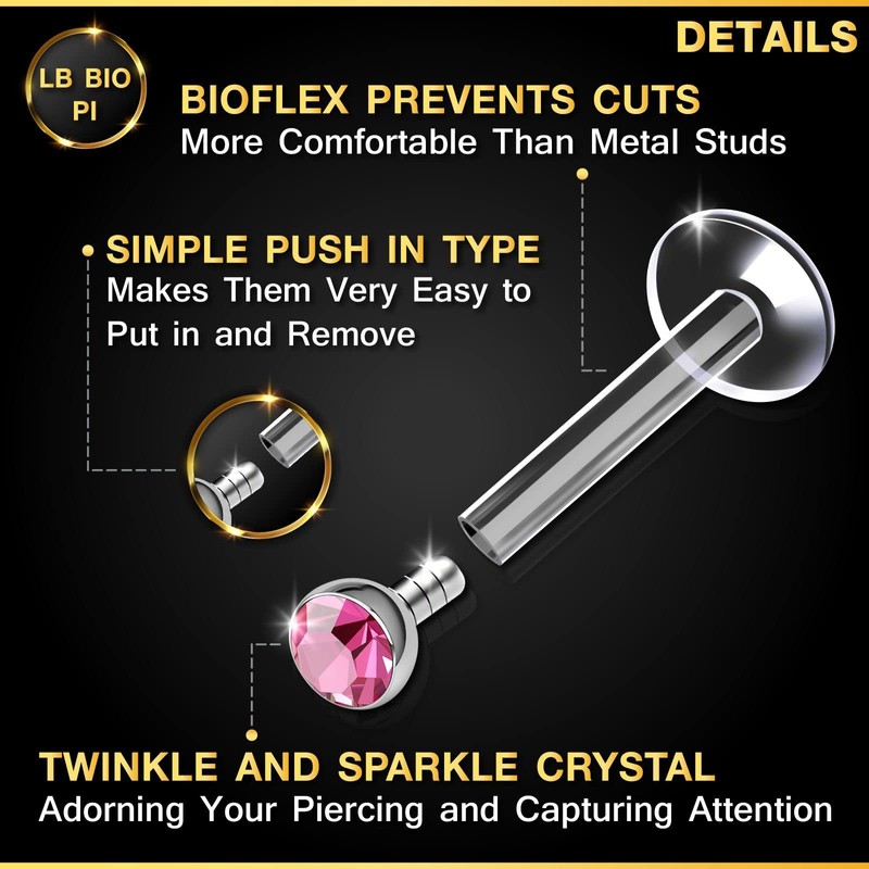 - Bioflex prevents cuts and is more comfortable than metal rivets, making it the perfect material for lip rings.