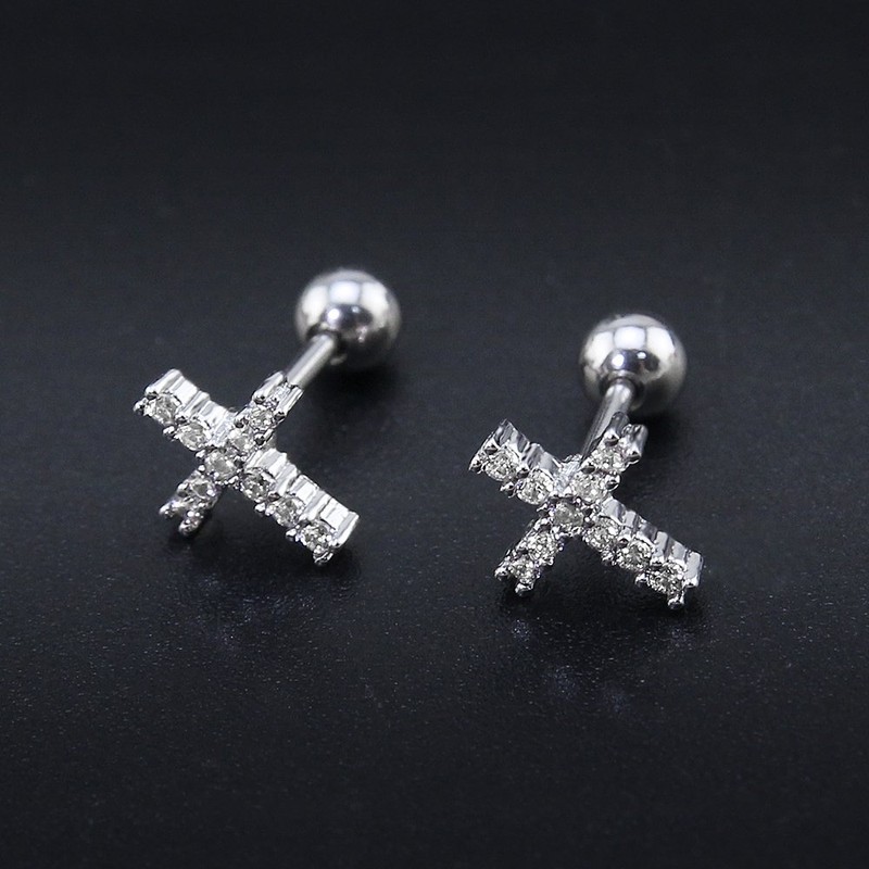 16g Sparkling Cubic Zirconia Stainless Steel Stud Earrings Tragus Helix Conch Cartilage Ear Piercing (Cross 8mm)