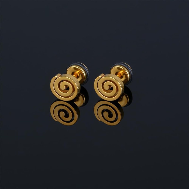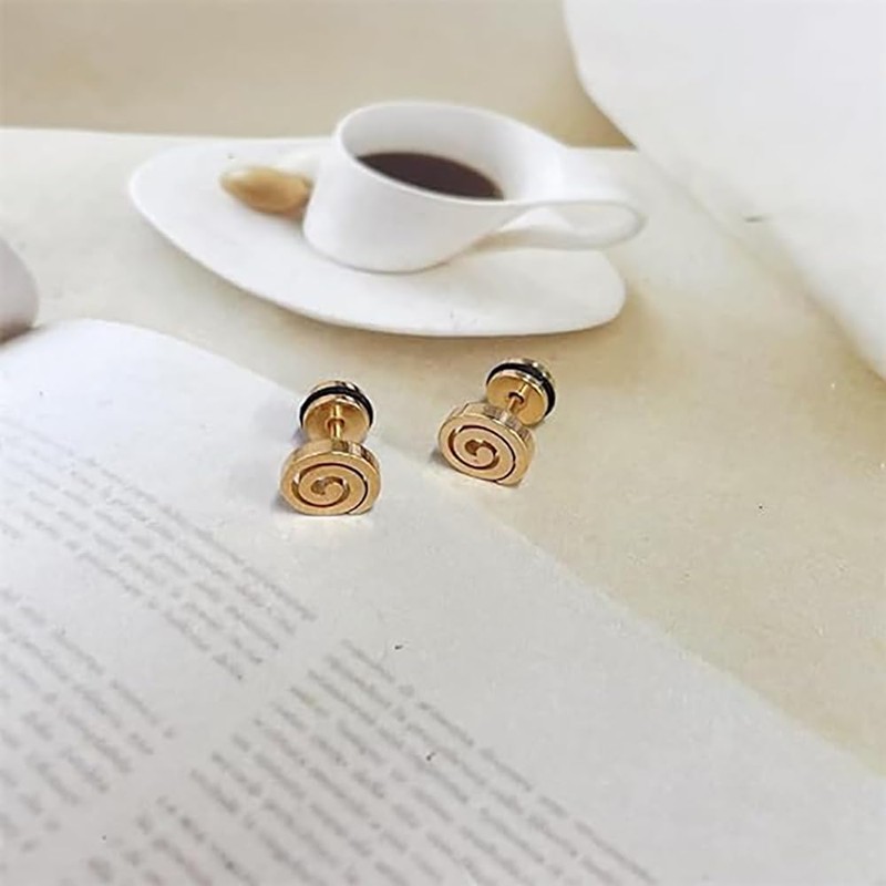 16G Spiral Swirl Screw Back Small Stud Earrings for Men Women Punk Minimalist Geometric Surgical Steel Cartilage Tragus Piercing Sleeper Studs Hypoallergenic for Sensitive Ears Gifts (Gold)