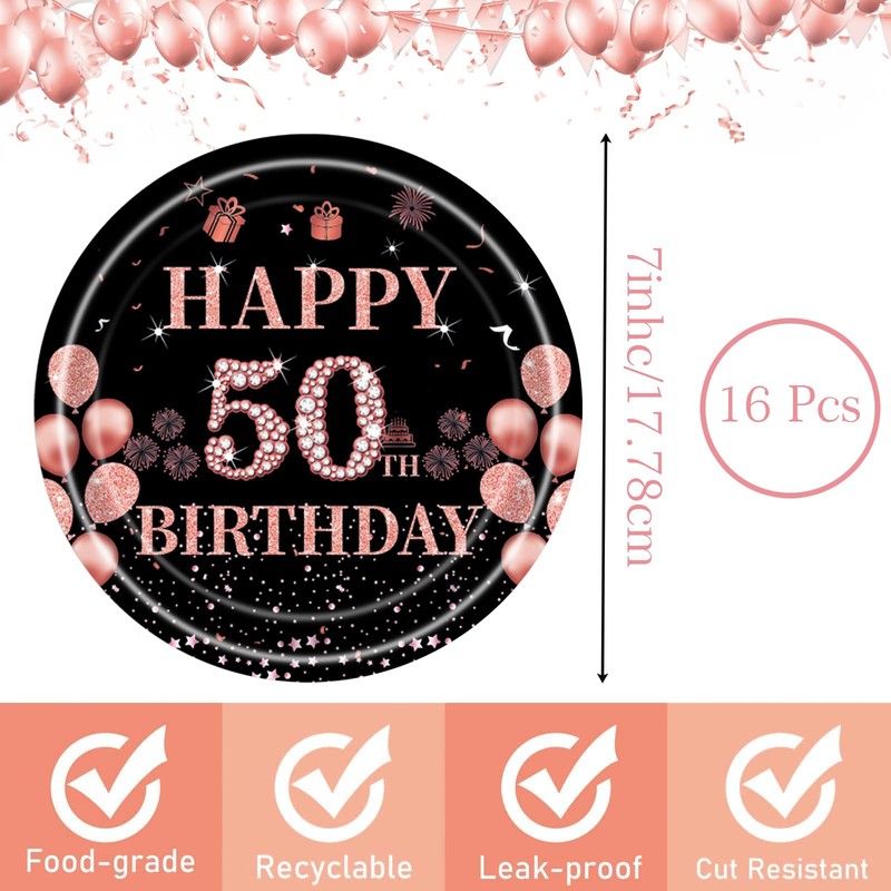 16Pack Paper Plates 50th Birthday,Black Rose and Gold Paperplates 7 inch,Disposable Party Plates Small Paper Plates Plain Paper Plates for Women,Kids,Her 50th Birthday Party Supplies Table Decorations