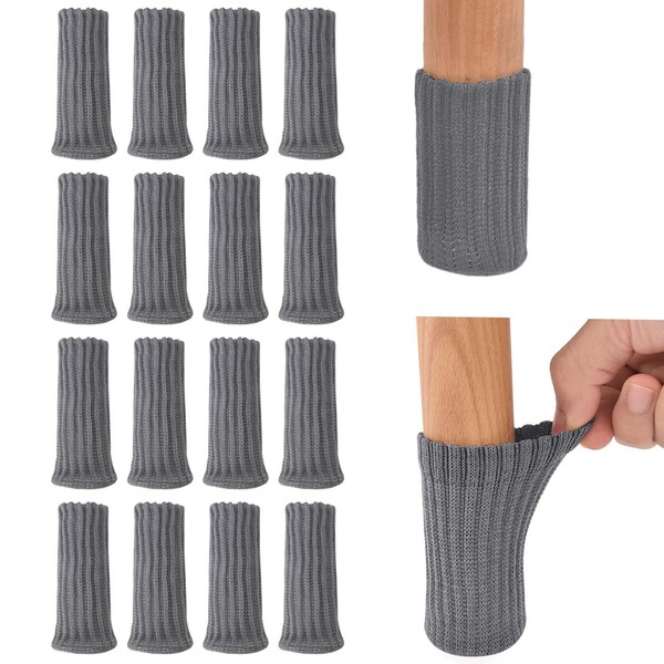 16PCS Chair Socks, Chair Leg Socks with Felt Pads, Knitted High Elastic Furniture Floor Protectors Non-Slip Table Feet, Leg Feet Covers Caps, Fit Square Round Chair,Grey