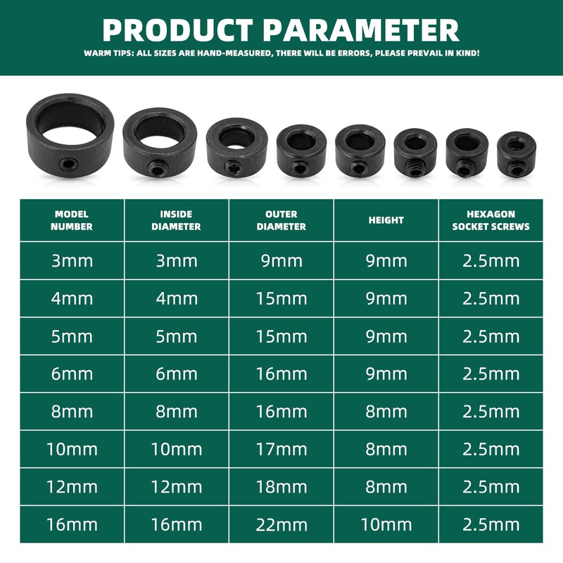 8Pcs Drilling Limit Ring Metric Sizes: 3 mm, 4 mm, 5 mm, 6 mm, 8 mm, 10 mm,12 mm, 16 mm