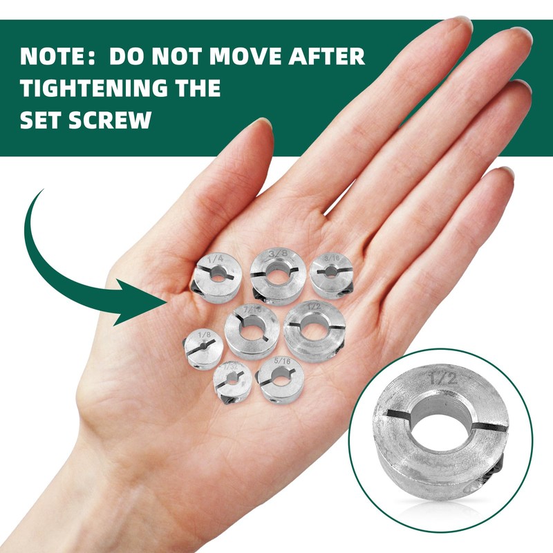 8Pcs Split Ring Stop Collar Imperial Sizes: 1/8", 3/16", 7/32", 1/4", 5/16", 3/8", 7/16", 1/2"