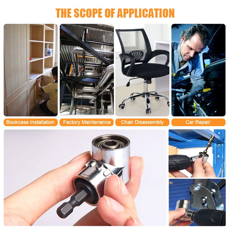 - Universal socket works on Power Drill and Handle Wrench Grip 7mm to 19mm. it is perfect for automobile industry, home maintenance, manufacturing, construction and other industries, also favored by home decoration DIY design enthusiasts. This universal socket can be adjusted instantly to grasp various shapes of hex nut, irregular screw, rotating hook, tension screw and bolt head,etc.