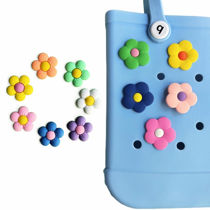 Blossom Your Style with 16 Flower Charms for Your Beach Bag! Transform your beach tote into a blooming work of art with this adorable set of 16 flower charms! Designed to fit perfectly on Bogg Bags, Simply Southern Totes, and similar rubber beach bags, these colorful and durable charms are made from high-quality PVC, ensuring they can handle all your summer adventures. Whether you’re lounging by the pool, exploring a tropical destination, or just adding a little flair to your everyday tote, these floral accessories bring a cheerful pop of color and personality to your style. With an easy snap-on design, customizing your bag is a breeze. Mix and match the pastel blooms to create your own unique look, or switch them out whenever you feel like changing things up. These versatile charms are perfect for anyone who loves to add a touch of fun to their outfits—and they make fantastic gifts for friends and family who share your passion for beachy vibes and creative expression.