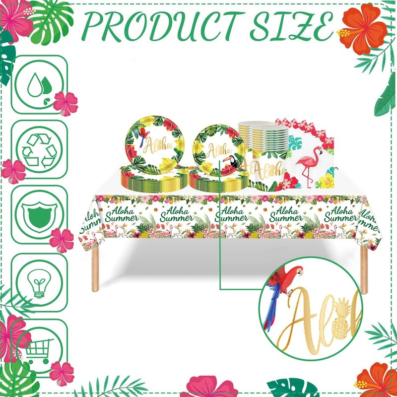 - 【Wildly Usage】: Our Aloha tropical party tableware the tone for any celebration, from fun and festive to elegant and sophisticated. Ideal for Hawaiian-themed parties, Luau parties, baby showers, weddings, anniversaries, and more, it will add a fabulous touch of Aloha to your special day.
