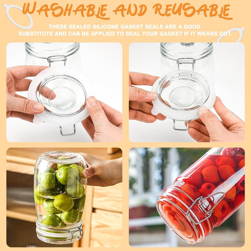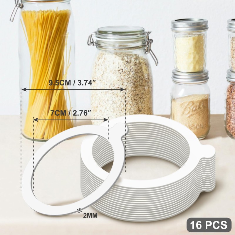 - Packaging content: This package contains a total of 16PCS replacement silicone can gaskets. You can choose from 0.35-liter, 0.5-liter, 1-liter, 1.5-liter, or 2-liter container stonemason cans. Suitable for cans with a diameter of 3.74inches, an inner diameter of 2.76 inches, and a thickness of 0.09 inches, the rubber ring can be replaced and resealed as a sealed can