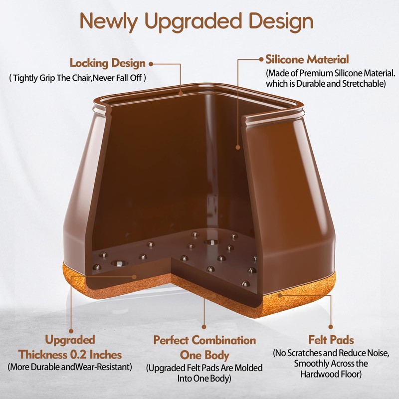 - [Universal Fit]: Introducing our invisible chair leg protectors for hardwood floors! Made with silicone and felt material. The elasticity and stretchability of our silicone protectors allow them to fit chairs, sofas, cabinets, beds, and more with square legs.