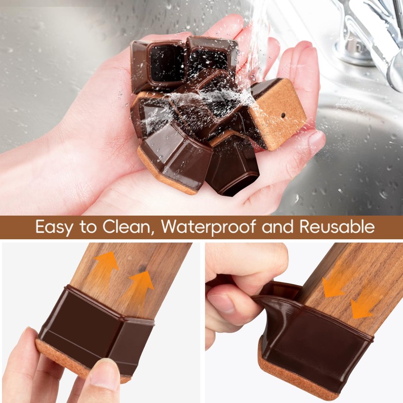 - [Easy to Install & Washable]: Say goodbye to nails, glue, and other tools that may damage your furniture! Our chair leg floor protectors are incredibly easy to install. Simply stretch them and slip them onto the table legs for a snug and secure fit. No more worrying about them falling off. Moreover, these protectors are washable and reusable. When necessary, remove them from the chair legs, rinse them off with water, and they'll be good as new for further use.