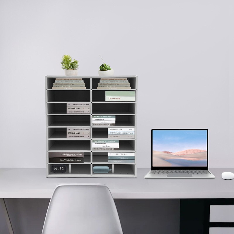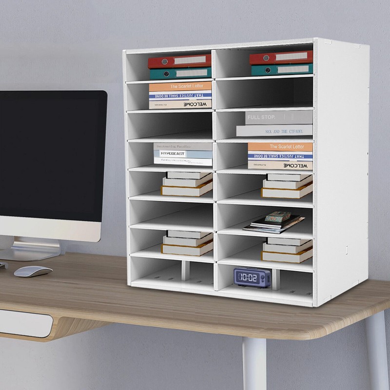 16slots 8 Tiers File Organizer Freestanding File Storage Holder White For Office