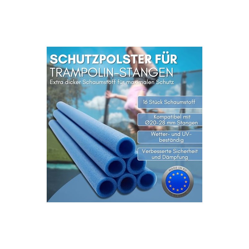 ✅ Perfekter Schutz für Ihr Trampolin – 16 hochwertige Schaumstoffpolster (92 cm) für 8 Stangen des Sicherheitsnetzes – ideal für mehr Sicherheit beim Springen.