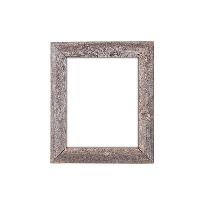 This 16x20 frame is manufactured from 100% authentic weathered wood allowing the rustic charm of the natural knots, nail holes and color variations show through. This is a flat frame with a 3.25 inch moulding to give it a unique look. All our frames are custom made at the time of order and will vary slightly from the picture due to the nature of the wood. Comes with sawtooth hanger. Our open frames do not ship with plexiglass or back. For a complete frame in the same style with plexiglass and backing see ASIN B00GUQKALC. Made in the USA! 23W X 27H X 3/4D
